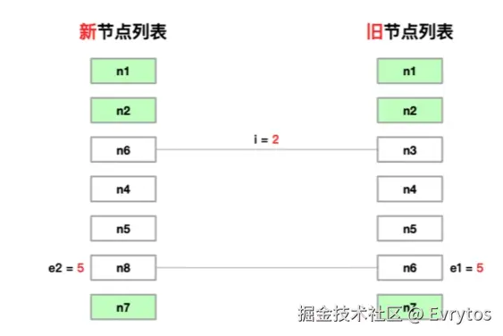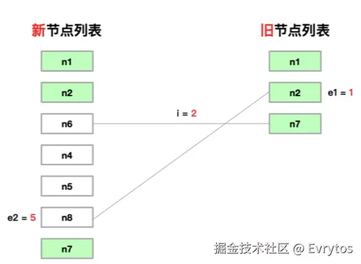 2. 从 i 到 e1 遍历旧节点
