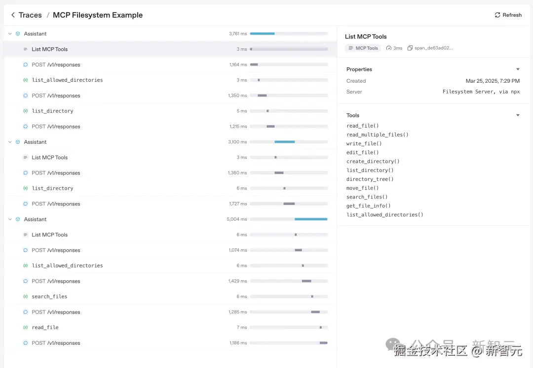 系统内置的链路追踪功能能够自动捕获所有 MCP 相关操作,主要包括: