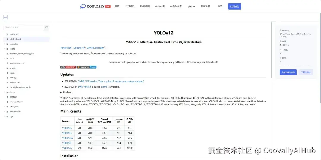 Coovally平台整合了国内外开源社区1000+模型算法和各类公开识别数据集,无论是最新的YOLOE、YOLO12模型还是Transformer系列视觉模型算法,平台全部包含,均可一键下载助力实验研究与产业应用。