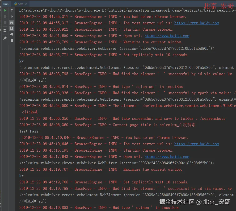 问题发现了没,我们的浏览器启动和关闭了两次,是不是这个问题?其实细心地小伙伴或者童鞋们在上一篇文章里就可能发现这个问题了,由于时间的关系宏哥在这里把它单独拿出来分享讲解一下,希望可以加深小伙伴或者童鞋们的印象。问题是原来每执行一次