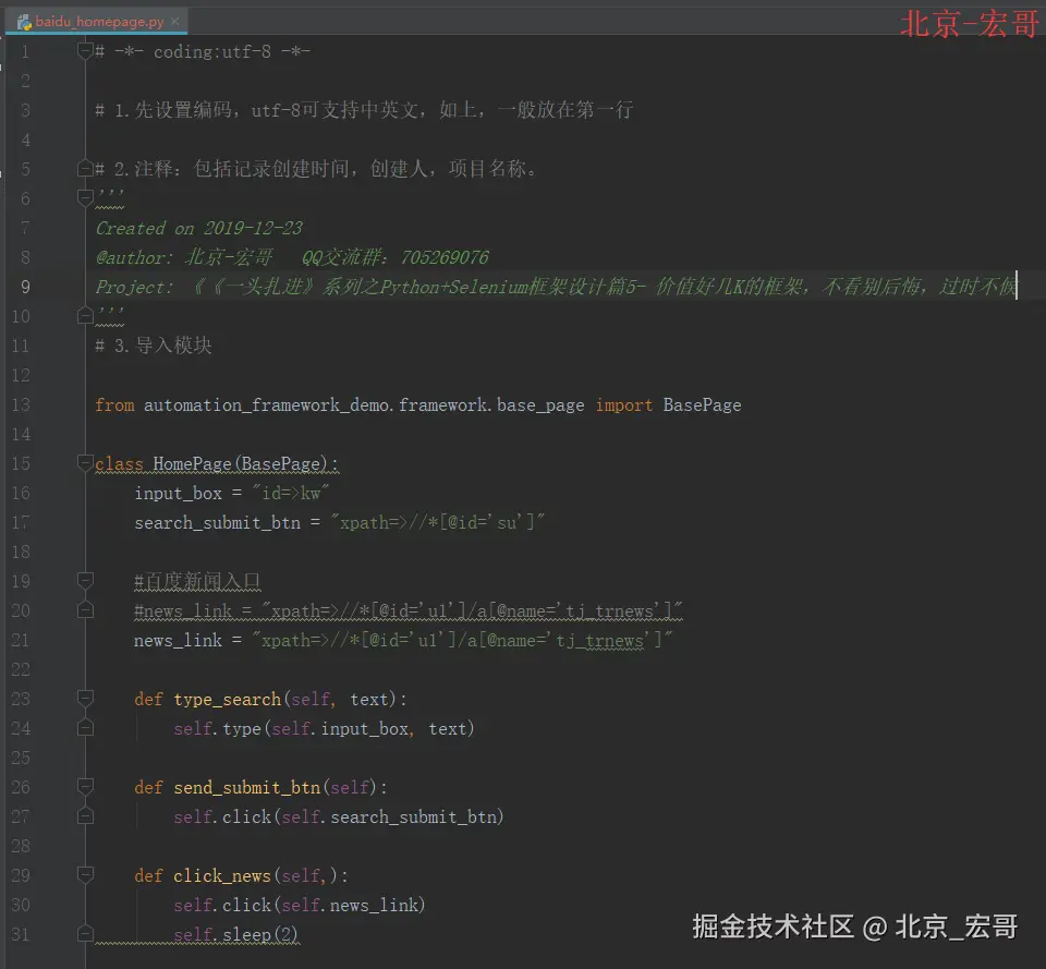 - 百度首页页面类代码(baidu_homepage.py),定义了百度新闻的入口