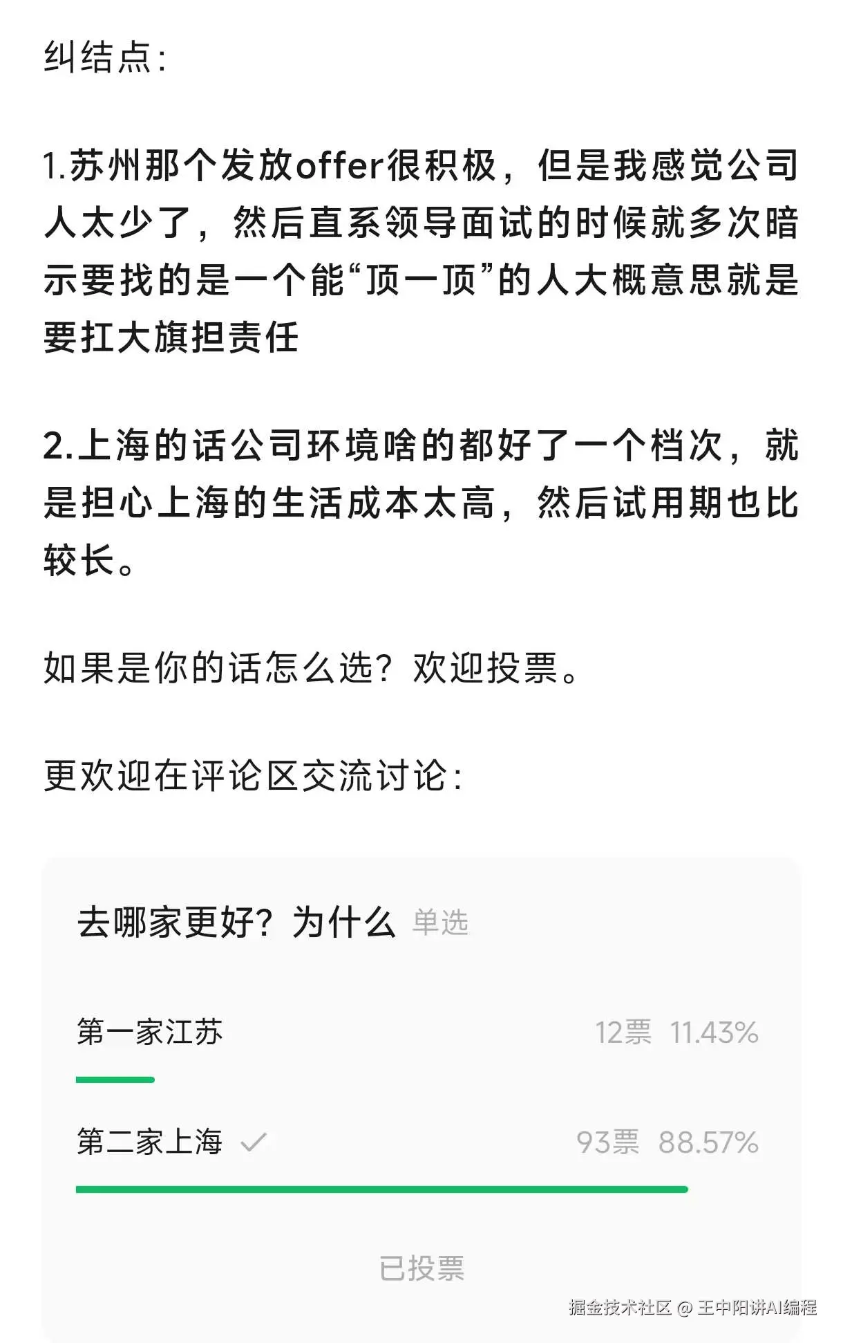 首先,非常感谢大家帮昨天投稿的粉丝投票 到手2个Offer:江苏13k13薪,上海16k13薪,纠结咋选?。