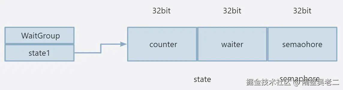 源码包中src/sync/waitgroup.go:WaitGroup定义了其数据结构: