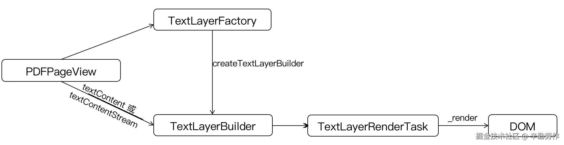 3. textLayer(文本层)是一层透明的文字,它与canvasLayer上绘制的文字一一对应,其作用就是让用户可以选中、复制文字,也是我们这次优化的关键。pdf.worker.js解析到的文字信息以对象(textContent)或流(textContenStream)的形式传递给一个TextLayerBuilder类实例,它利用这些数据创建textLayer。