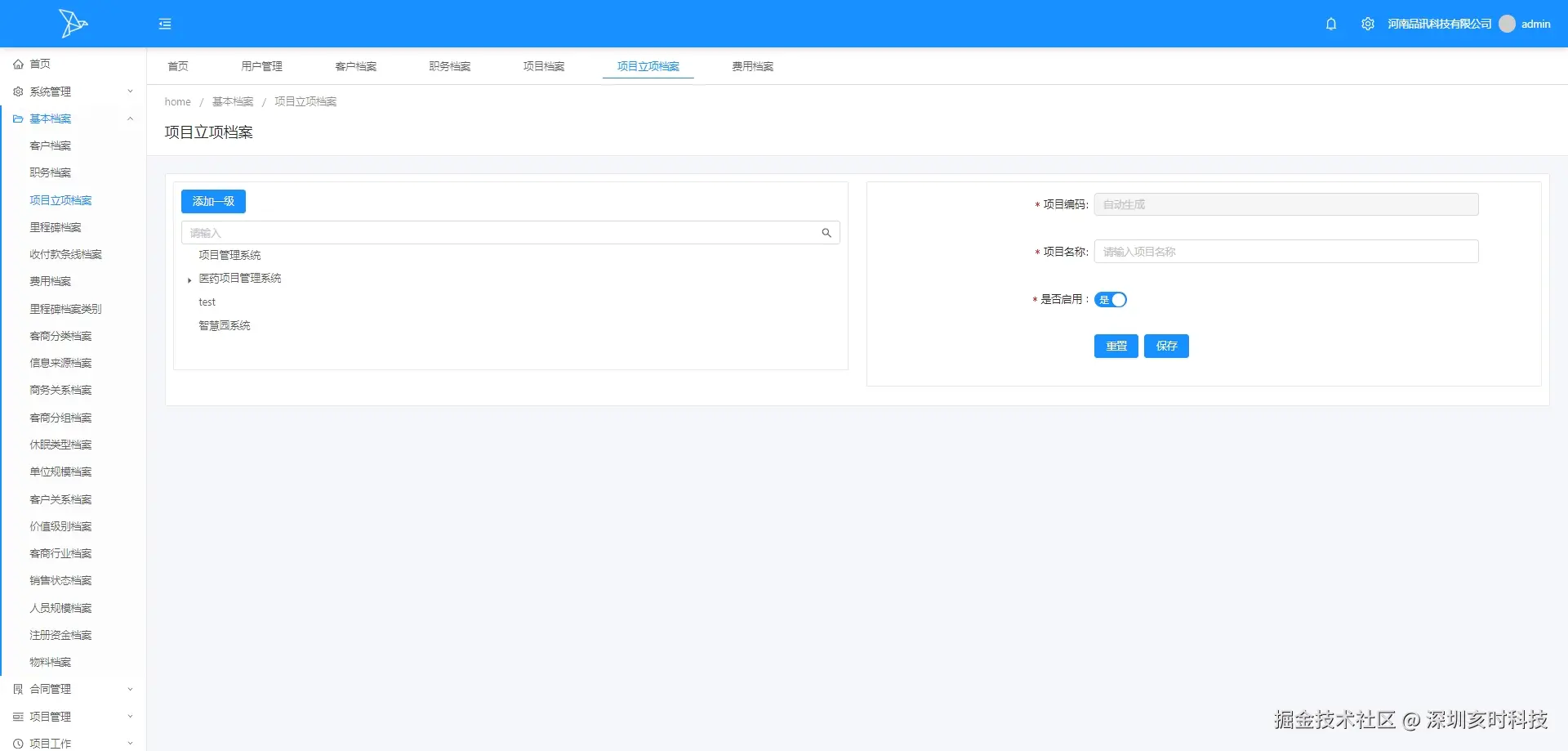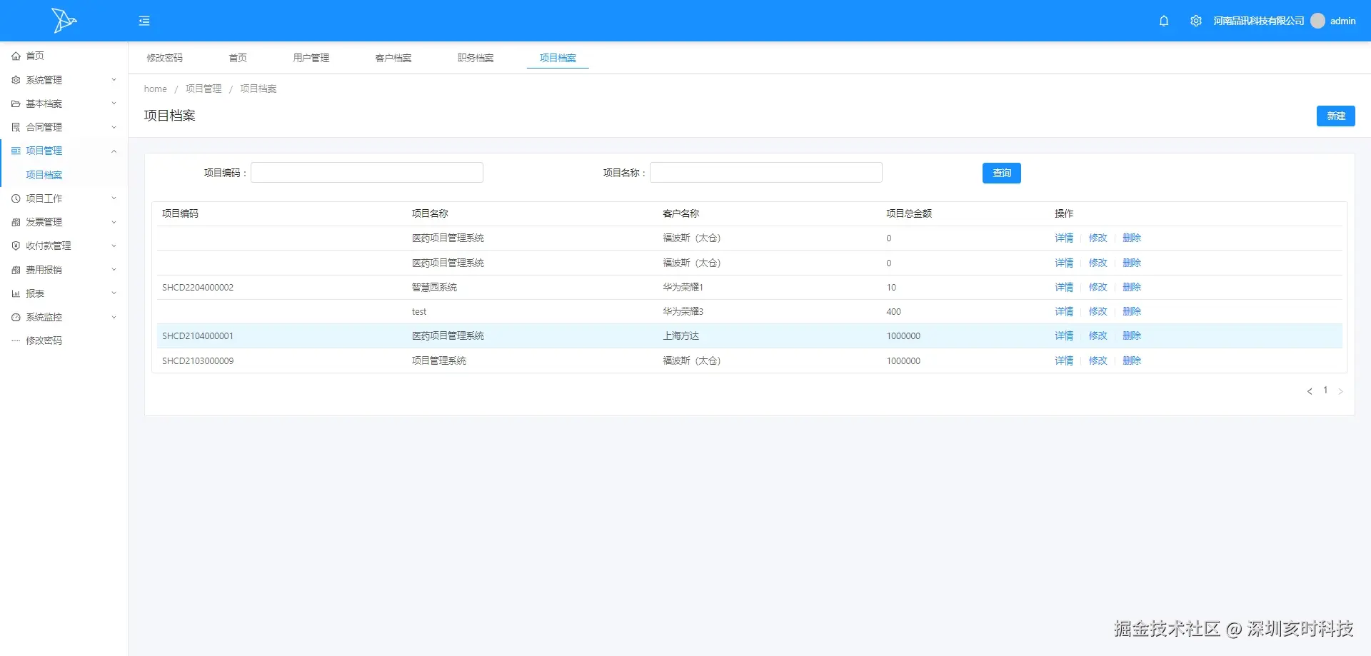- 项目立项:管理项目的立项信息,包括项目名称、目标、预算、时间和负责人等。