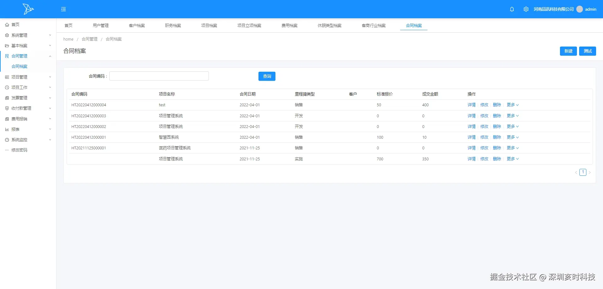 - 合同档案:存储和管理所有合同的详细信息,包括合同条款、签约方、金额、有效期和相关文件。