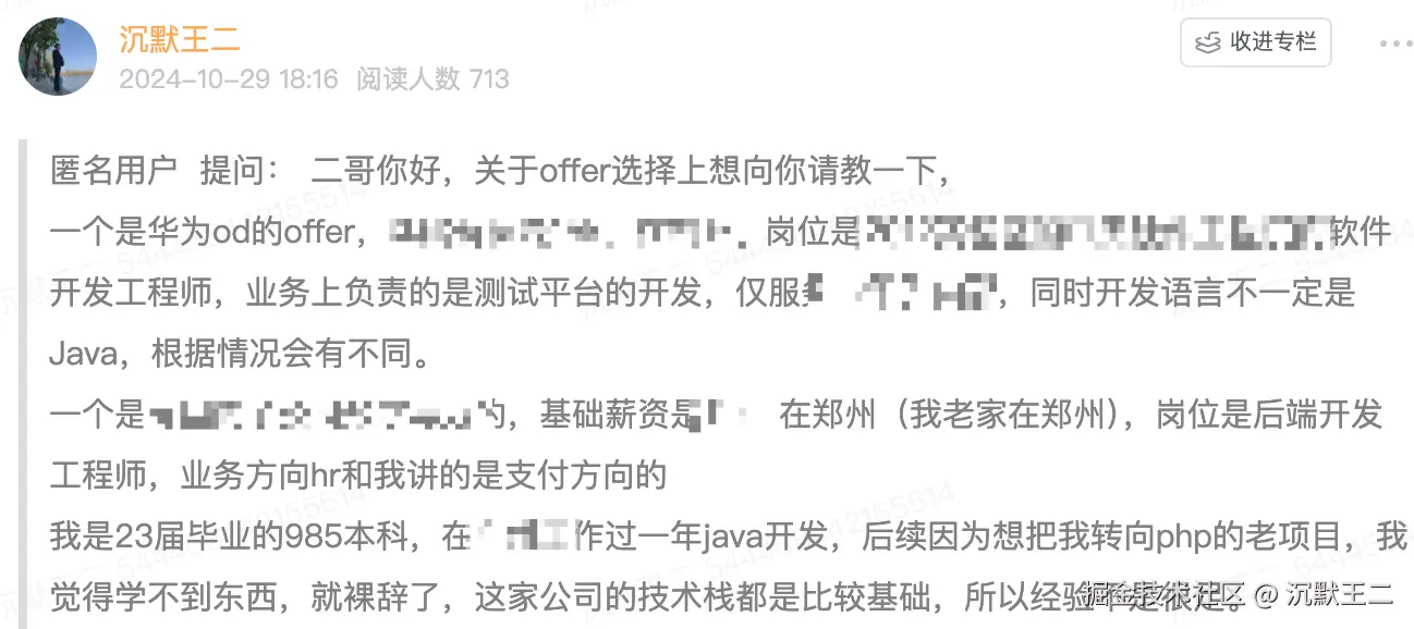 24 年10 月份拿到了两份 offer,一个是华为 od,另外一个暂时先保密,薪资待遇比华为 OD 这个低一些。