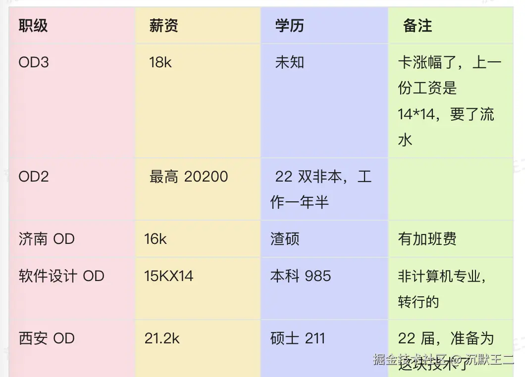 像我之前统计的这份华为 OD 薪资一览表,其实就很能说明问题。