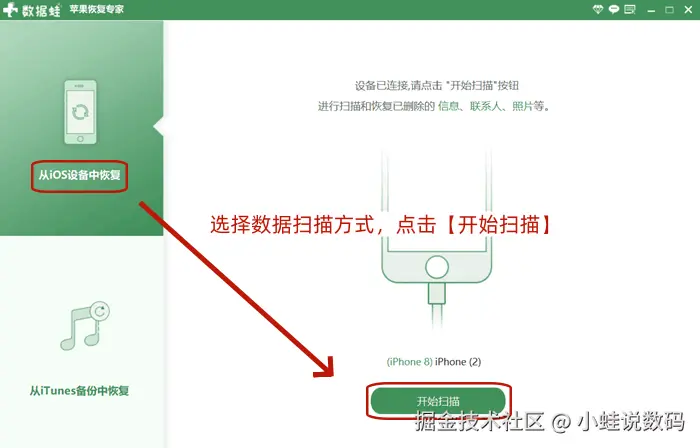 步骤1.在电脑上下载并安装数据蛙苹果恢复专家。连接你的iPhone到电脑上,启动软件。