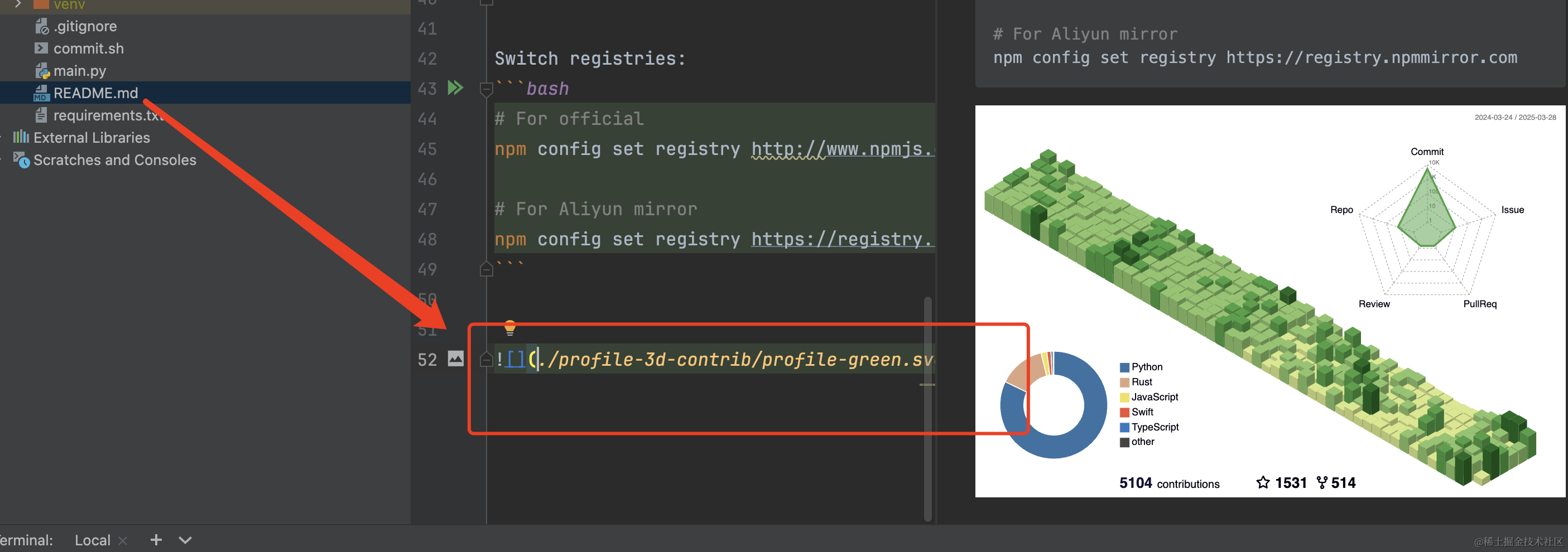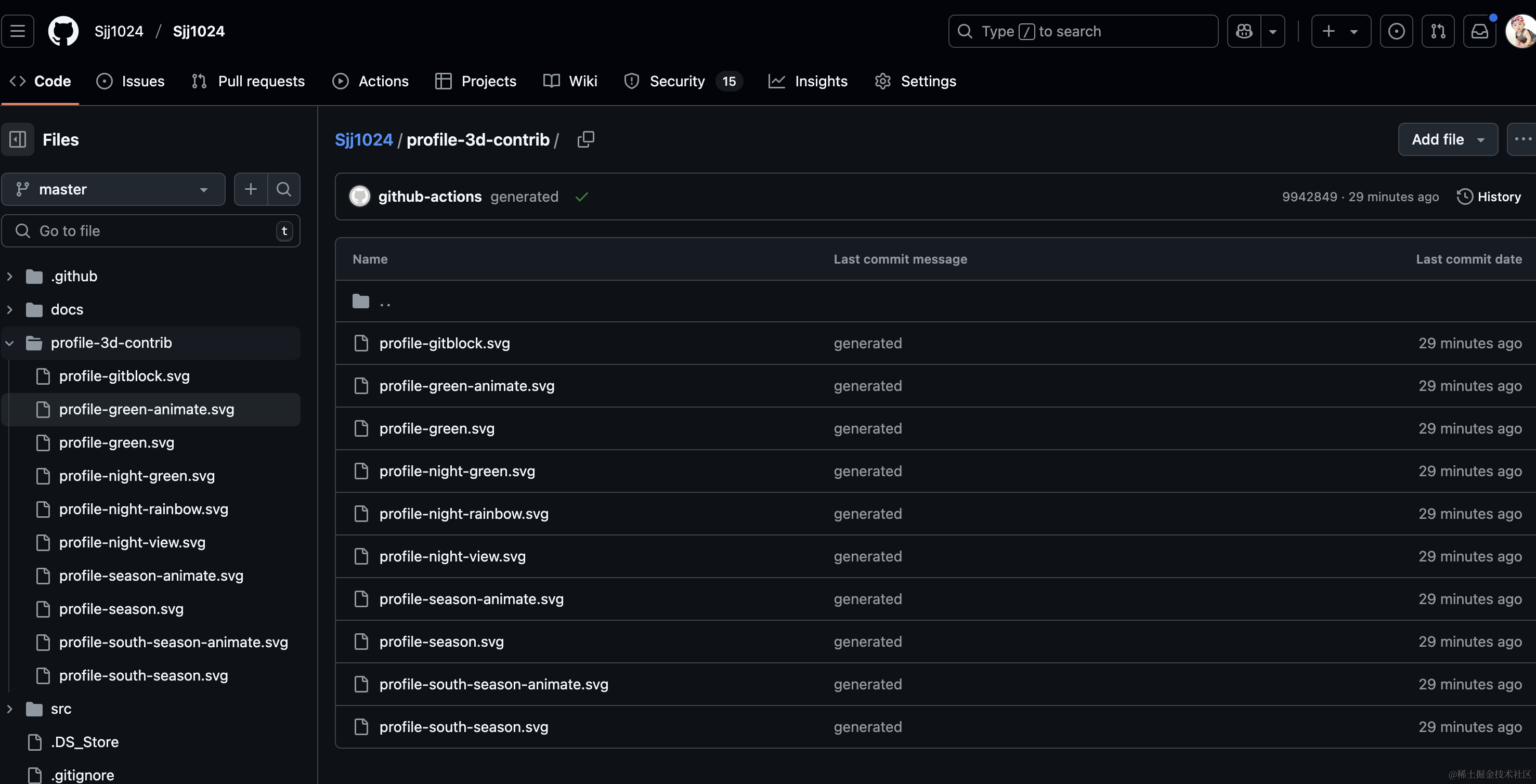 然后手动执行一次 action:Actions -> GitHub-Profile-3D-Contrib -> Run workflow