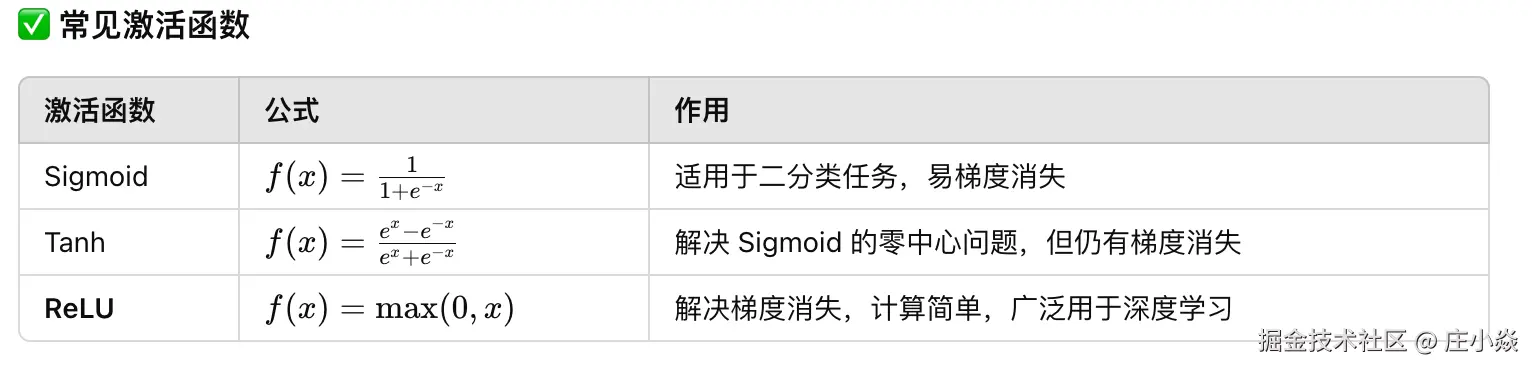 - 非线性激活函数 让网络能学习复杂映射关系。