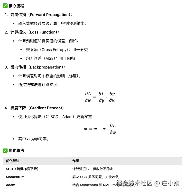 - 反向传播 + 梯度下降 让网络不断优化权重,找到最优特征表示。