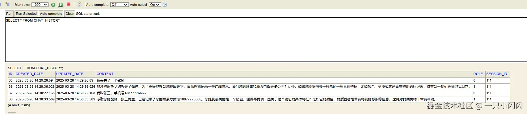 正常来说,我们期望肯定是一条用户消息,最终只会产生2条对话记录(一条用户消息,一条最终回复的AI消息)。