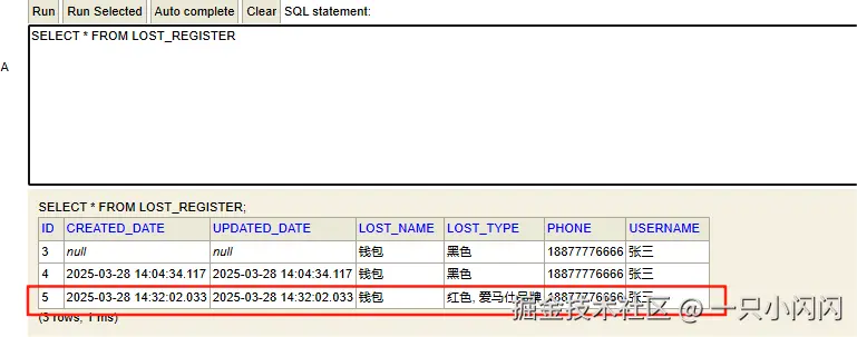 数据库记录如下: