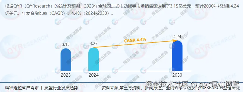 全球市场规模:根据QYResearch最新调研报告显示,2023年全球固定式电动扳手市场销售额达到了3.15亿美元,预计2030年将达到4.24亿美元,年复合增长率(CAGR)为4.4%(2024-2030)。