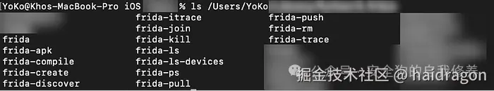 正确安装后,Frida 将位于 目录中,尽管确切的路径可能会因用户的环境而异。 /Users/username/Library/Python/x.x/bin
