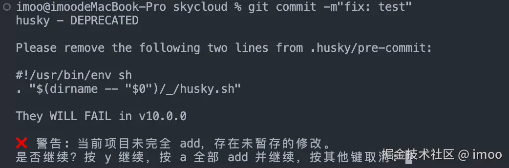 作为程序员,很自然就想到,在提交前检查一下是否有文件没有进行 git add,这个功能又很自然联想到 husky + commitlint 两件套。