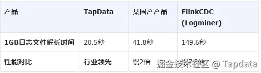 效率翻倍:相比竞品,TapData 解析速度领先优势明显,1GB日志仅需20秒完成,帮助企业节省更多时间成本。