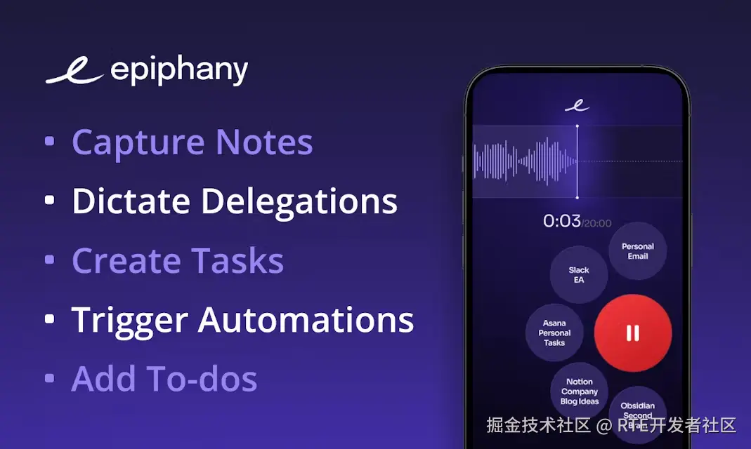 1、Epiphany :一款通过语音笔记快速将想法转化为行动的工具