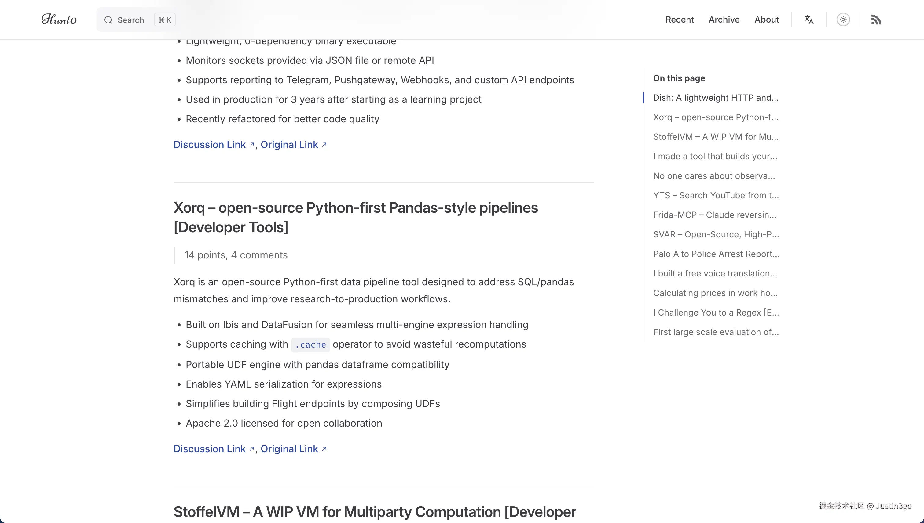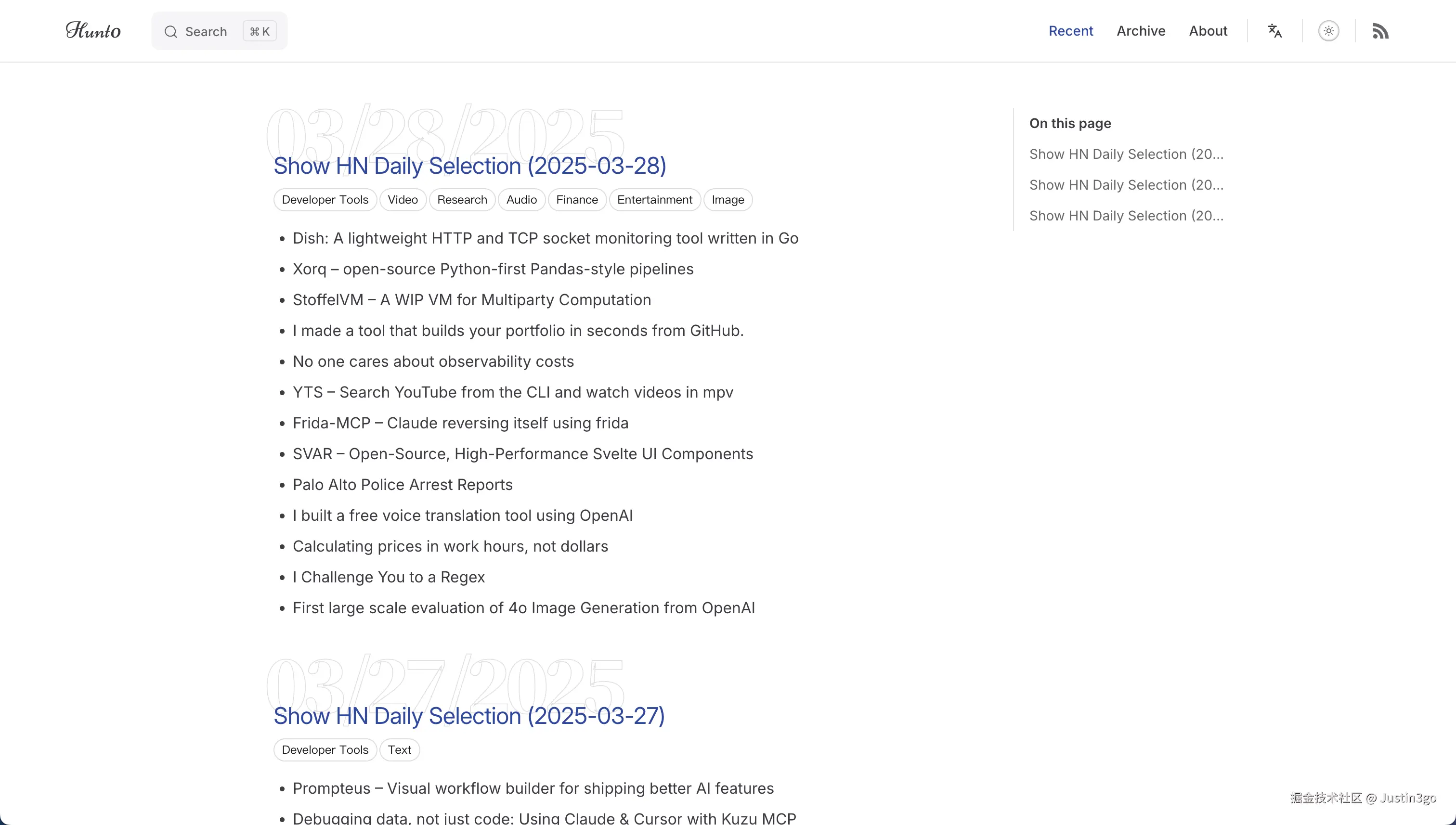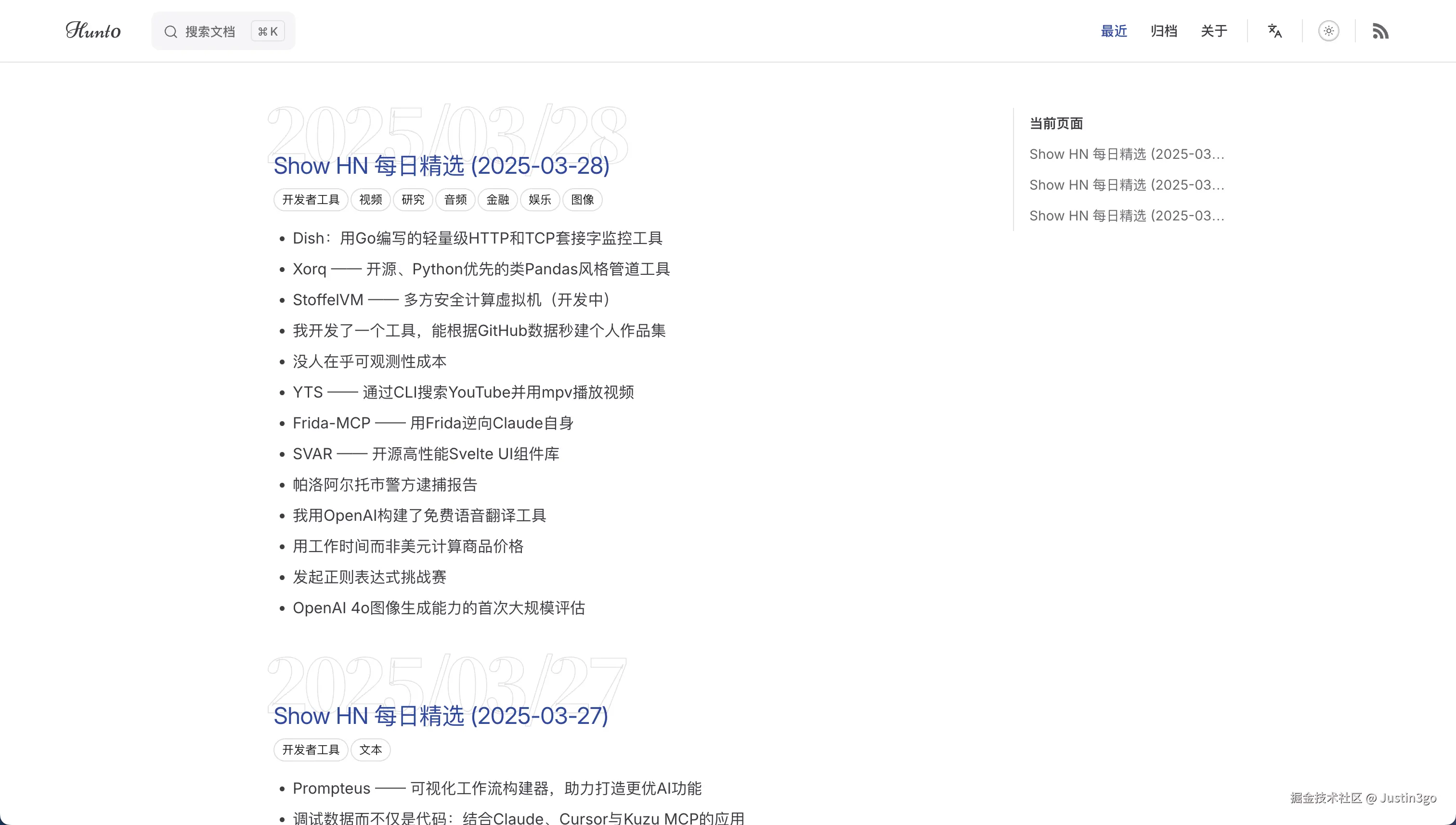 所以我做了这样一个网站,本站的目标是成为一个高效的 Show HN 内容精选平台,帮助用户快速了解每天值得关注的新项目。通过自动化的内容采集、分类和多语言翻译,让全球用户都能便捷地获取这些优质内容。