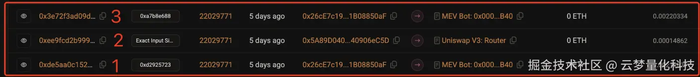 3、后置卖出: 在目标交易之后卖出代币,赚取差价 如图 MEV Bot: