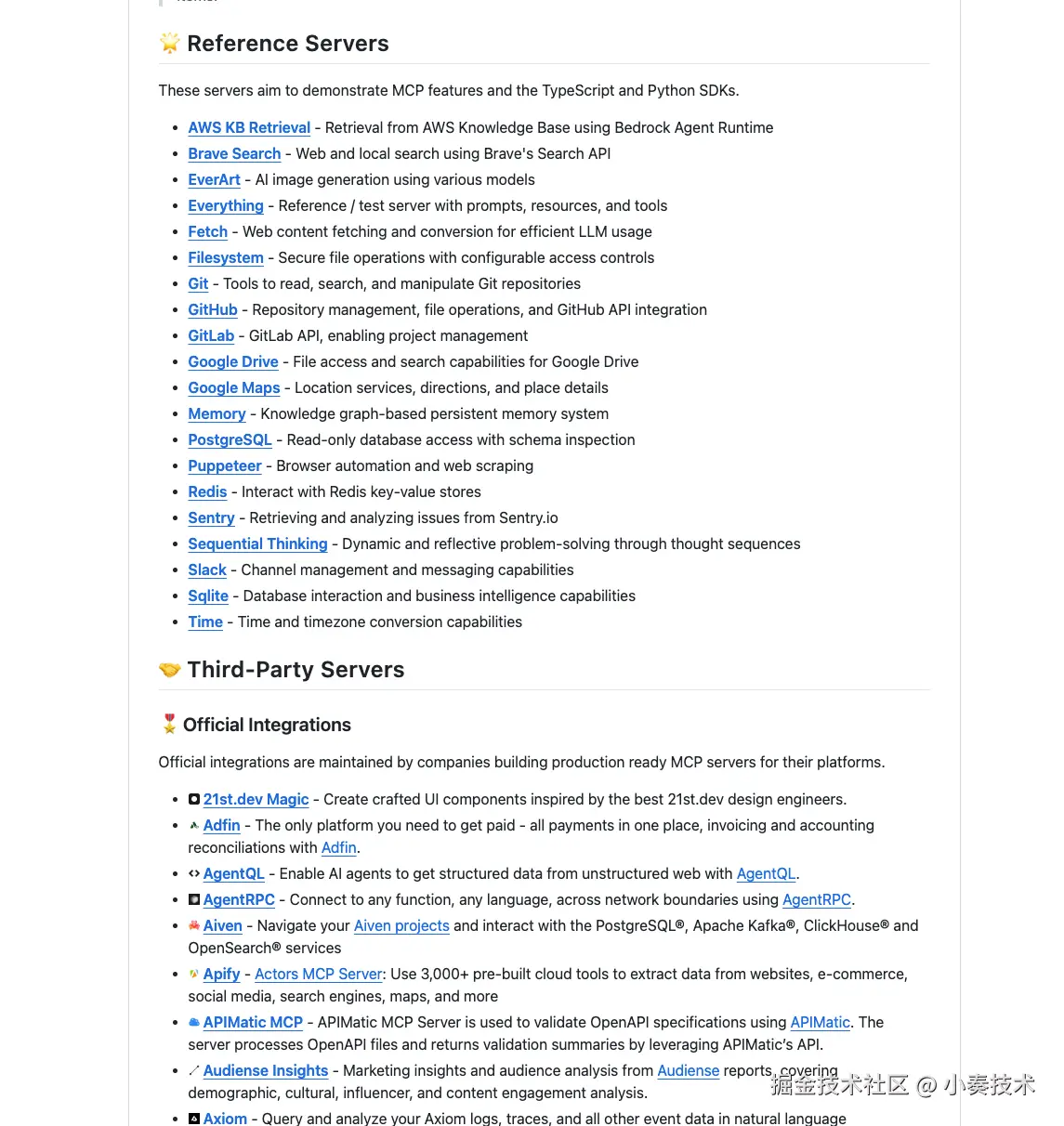 目前开源的 MCP servers