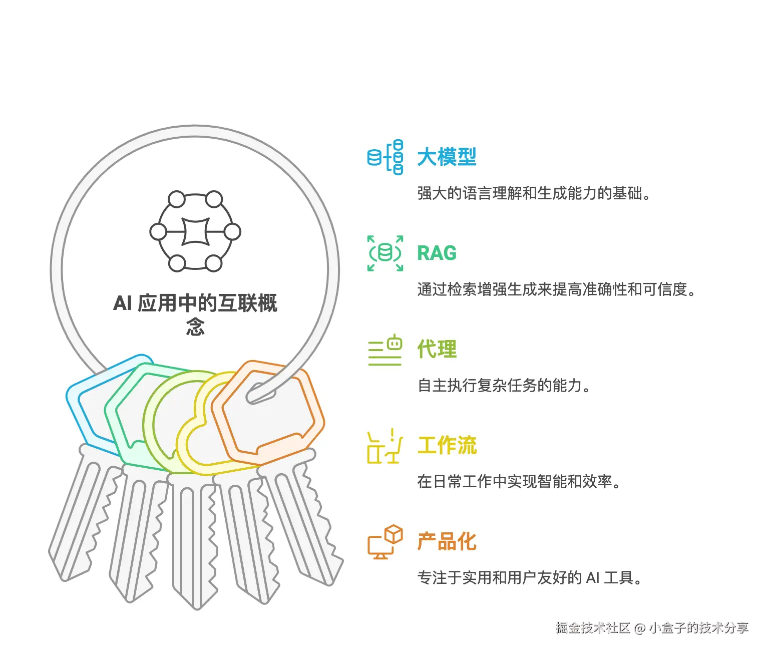 希望本文能帮助你梳理人工智能大模型相关领域的重要概念及它们之间千丝万缕的联系。从基础模型的横空出世,到 RAG 为模型插上知识的翅膀,再到 Agent 赋予 AI 主动性、工作流将 AI 引入千行百业,这场 AI 新范式的演进之旅才刚刚开始。而我们每一个人,都有幸作为见证者甚至参与者,站在这一历史进程的起点,一同去领略智能时代的精彩篇章。