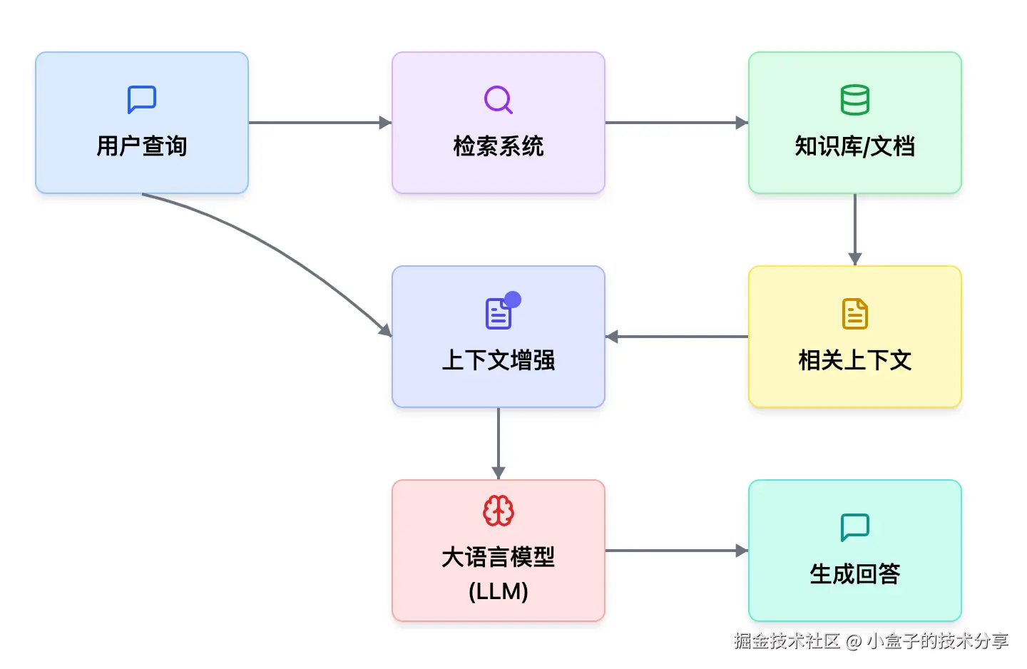 这一技术理念由 Facebook AI Research 团队于 2020 年提出。它通过将信息检索与生成模型结合,赋予了大模型“开卷考试”的能力:先检索,后作答。其典型流程通常包括三个步骤: