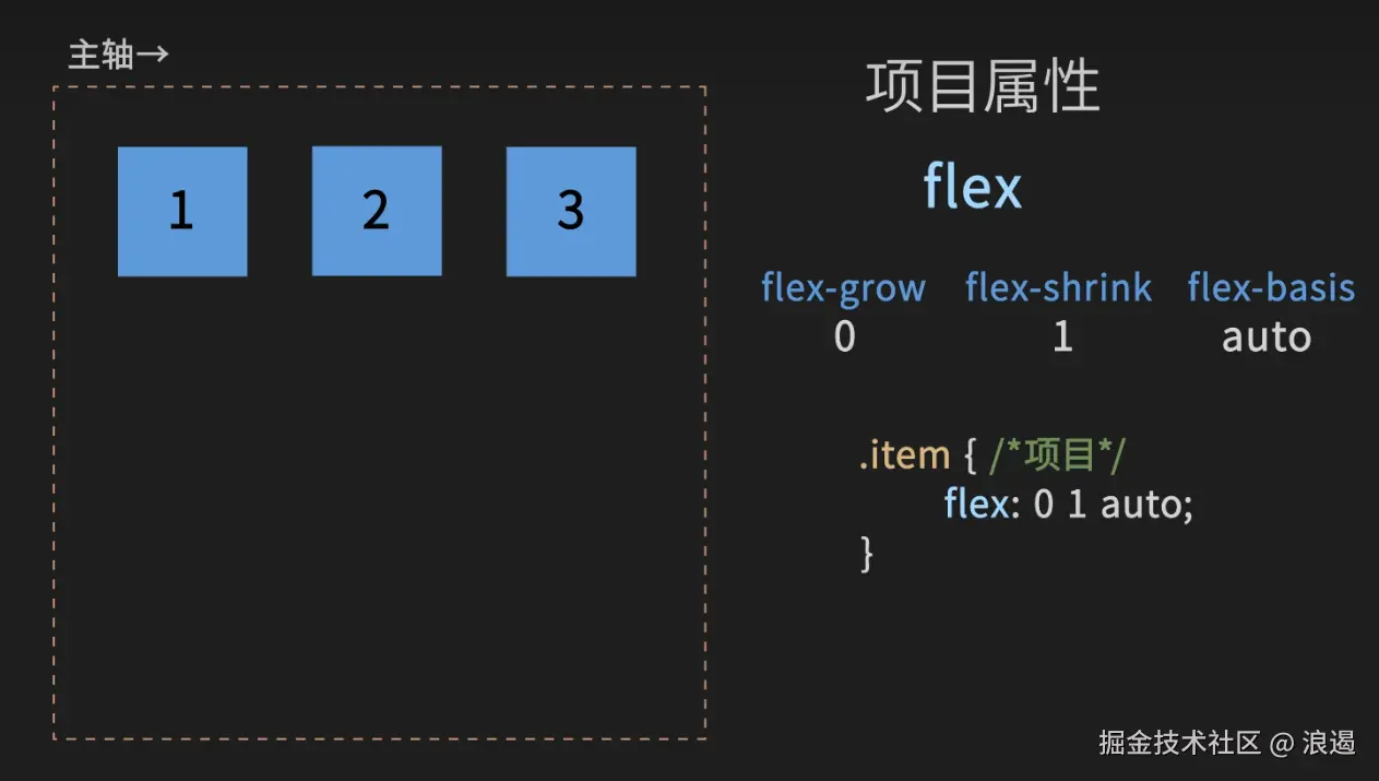 作用:定义Flex项目在容器中分配剩余空间的比例。