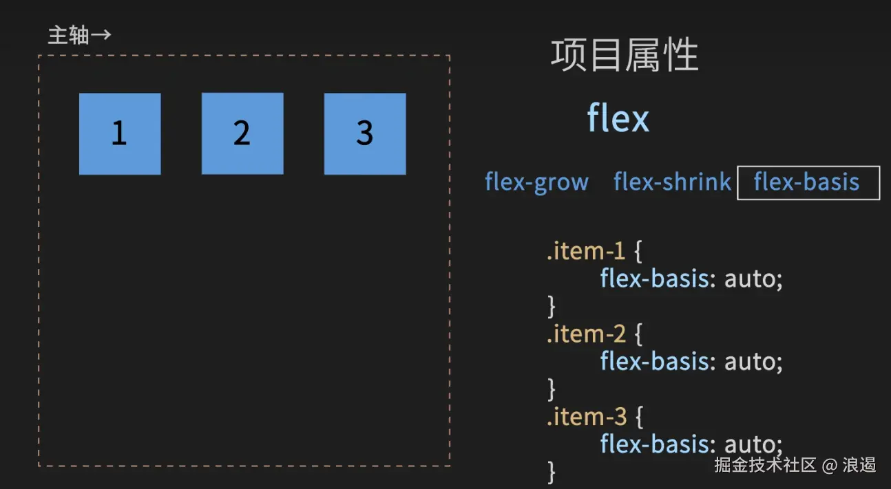 作用:定义Flex项目在分配多余空间之前的初始大小。
