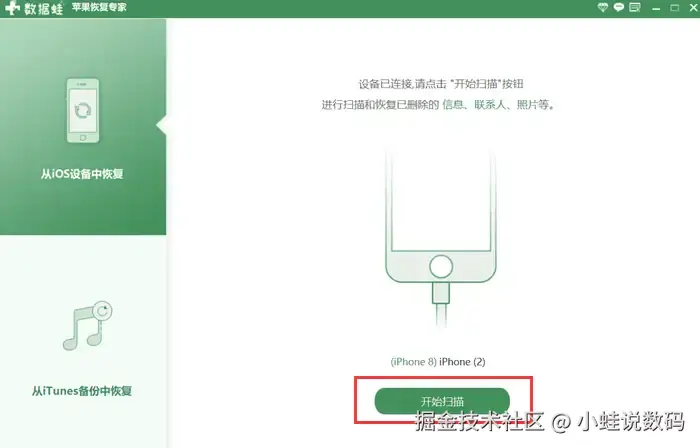 操作步骤(以数据蛙苹果恢复专家为例):