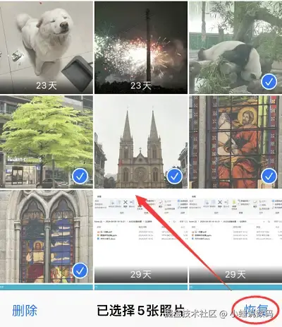 操作步骤: 打开 “照片”应用。点击底部菜单栏的 “相簿” 。滑动至底部,找到并点击 “最近删除” 。在这里,你可以看到最近30天内删除的所有照片。在这里选择想要恢复的照片,点击 “恢复” 。