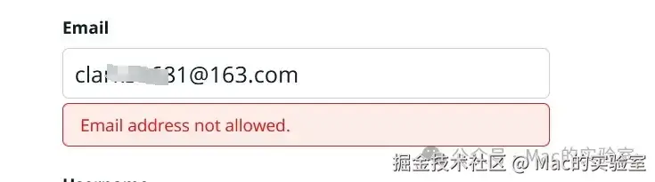 注意官网不支持QQ邮箱、163邮箱等国内邮箱,填写国内邮箱会提示不允许。