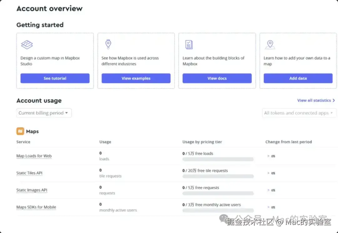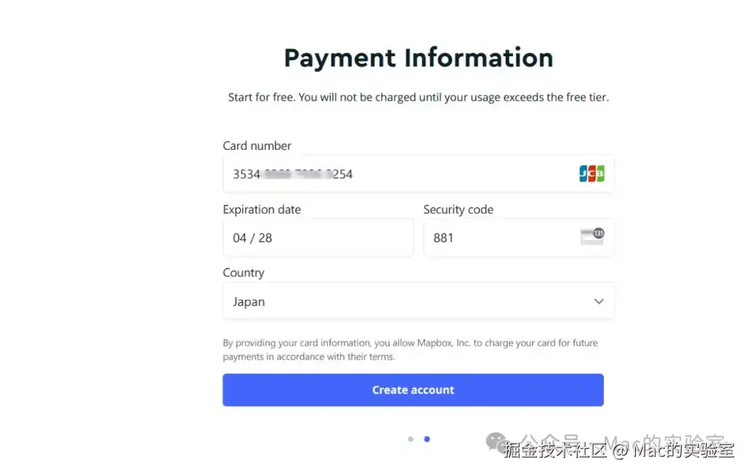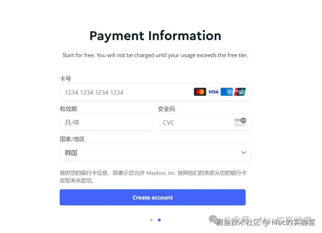 实在没有卡号可用验证的同学可以在公众号:Mac的实验室 后台回复 mapbox 获取帮助
