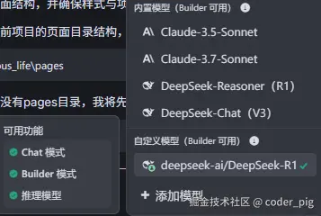 - 😑 Claude-3.7-Sonnet 代码生成效果最好,但排队要命,编码1小时,排队59分钟🤣,Claude-3.5-Sonnet 偶尔也要排,DeepSeek R1 不用排,效果凑合,💁♂️ 不想等的土豪可以自定义模型~