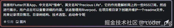 Tips:😄 有编程经验的,刚开始搭建项目,在readme里粘贴一个目录树结构,用到的库,然后用 Builder 生成非常舒服~