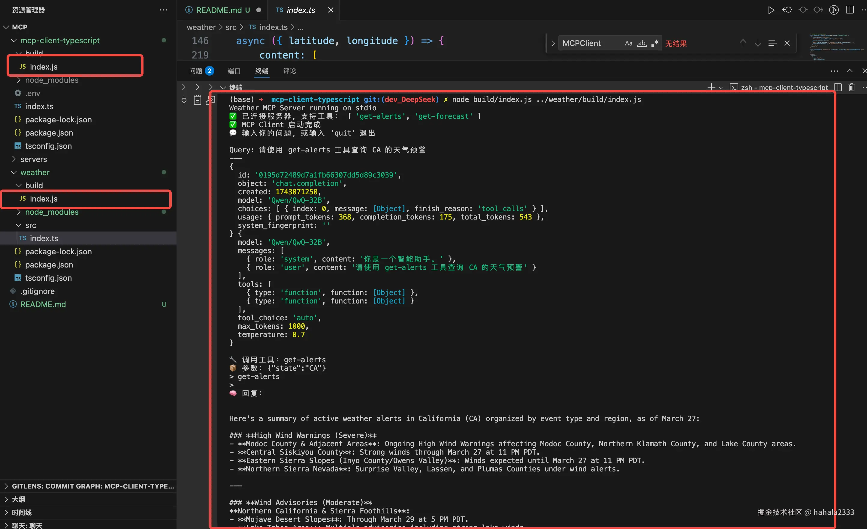 然后由你的程序调用真实的天气 API,拿到结果后再返回给模型,比如: