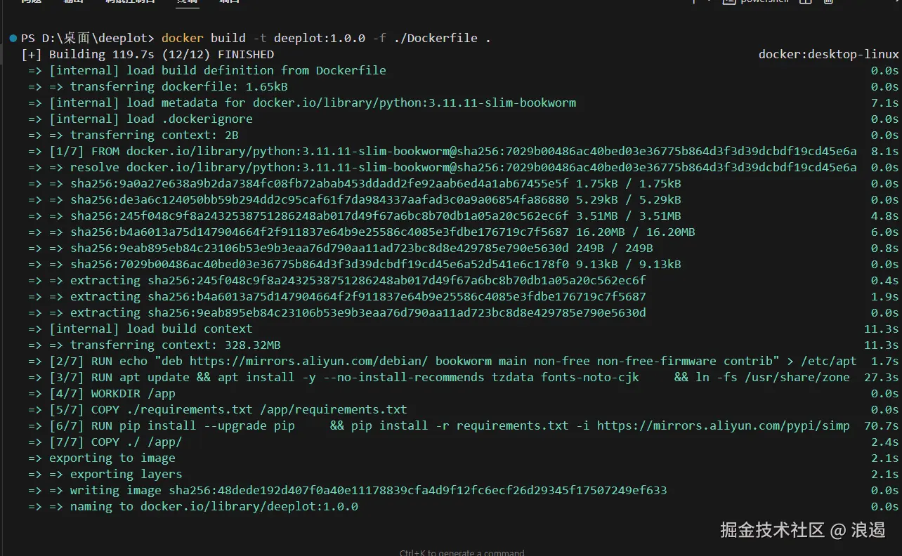 在服务器构建是最简单的方案 , 而在本地构建则需要你电脑上有docker环境 , 而我的电脑是windows , 安装docker有点靠运气(因为相比linux , 太坑了),还好我之前已经安装好了🤡 , 顶着C盘13G的压力硬是没有把docker环境(WSL、ubuntu、docker Desktop)删除掉 , 这不 , 它表现的机会来了~