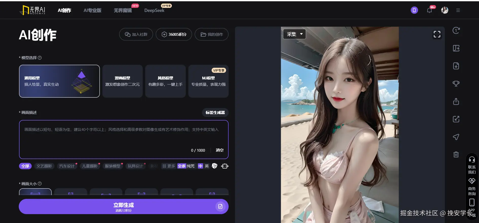 一个国产 AI 绘画平台,具有很强的本土特征,根据国内用户习惯进行打造,反正我是很喜欢拿来创作美女图片,这个平台绘制美女还是在线的。懂得都懂。