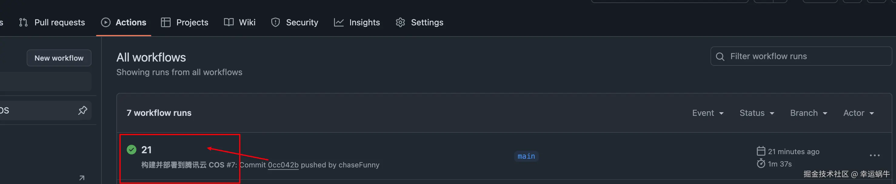 我们可以进行一次文件上传,然后会去 Actions 下看到: