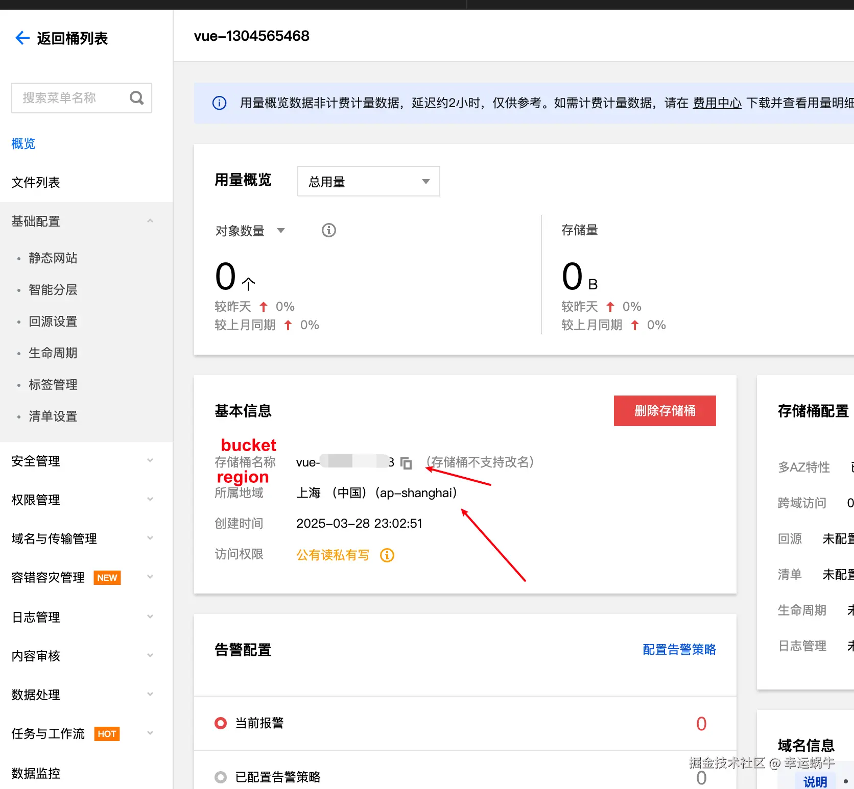 创建静态网站的存储桶