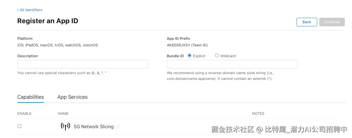 如果没有Bundle Identifier,需要到网页的开发者平台上申请Bundle Identifier,具体流程如下:
