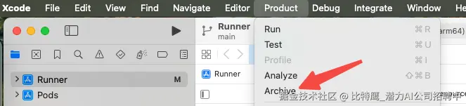 Product -> Archive,项目就会开始打包了,耐心等待打包完成。