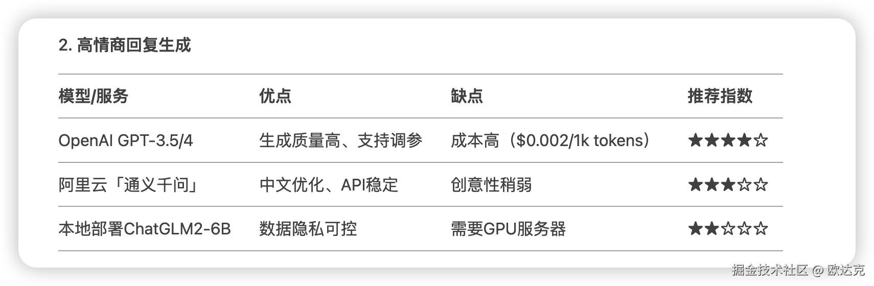 上一篇介绍了项目基本内容和技术选型,这篇文章主要介绍大模型的集成。对于普通开发者来说,最快捷的方式就是直接用现有的大模型。初期不会花很多时间在模型的选择和集成上,主要是把链路跑通,后续再做微调。