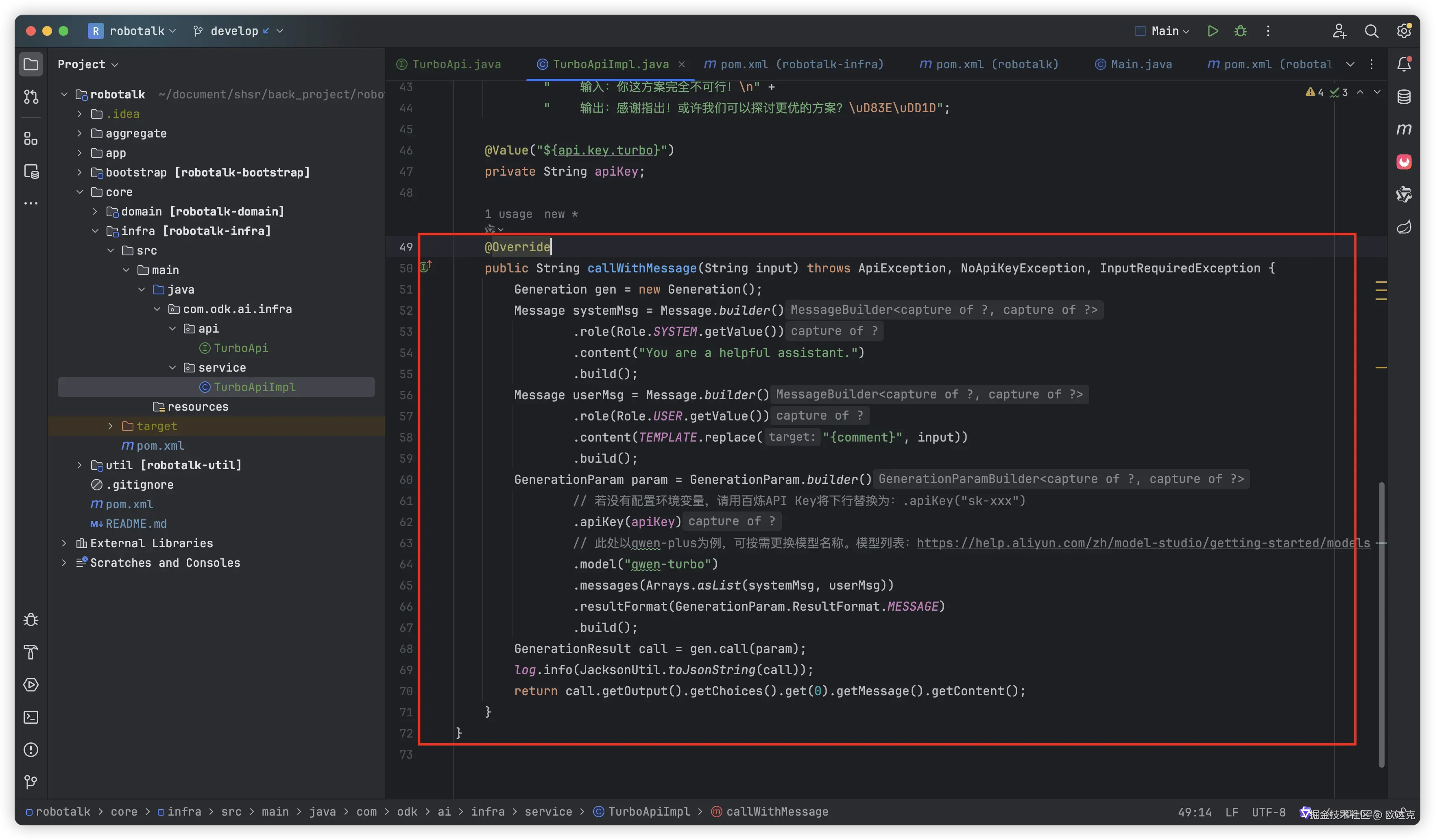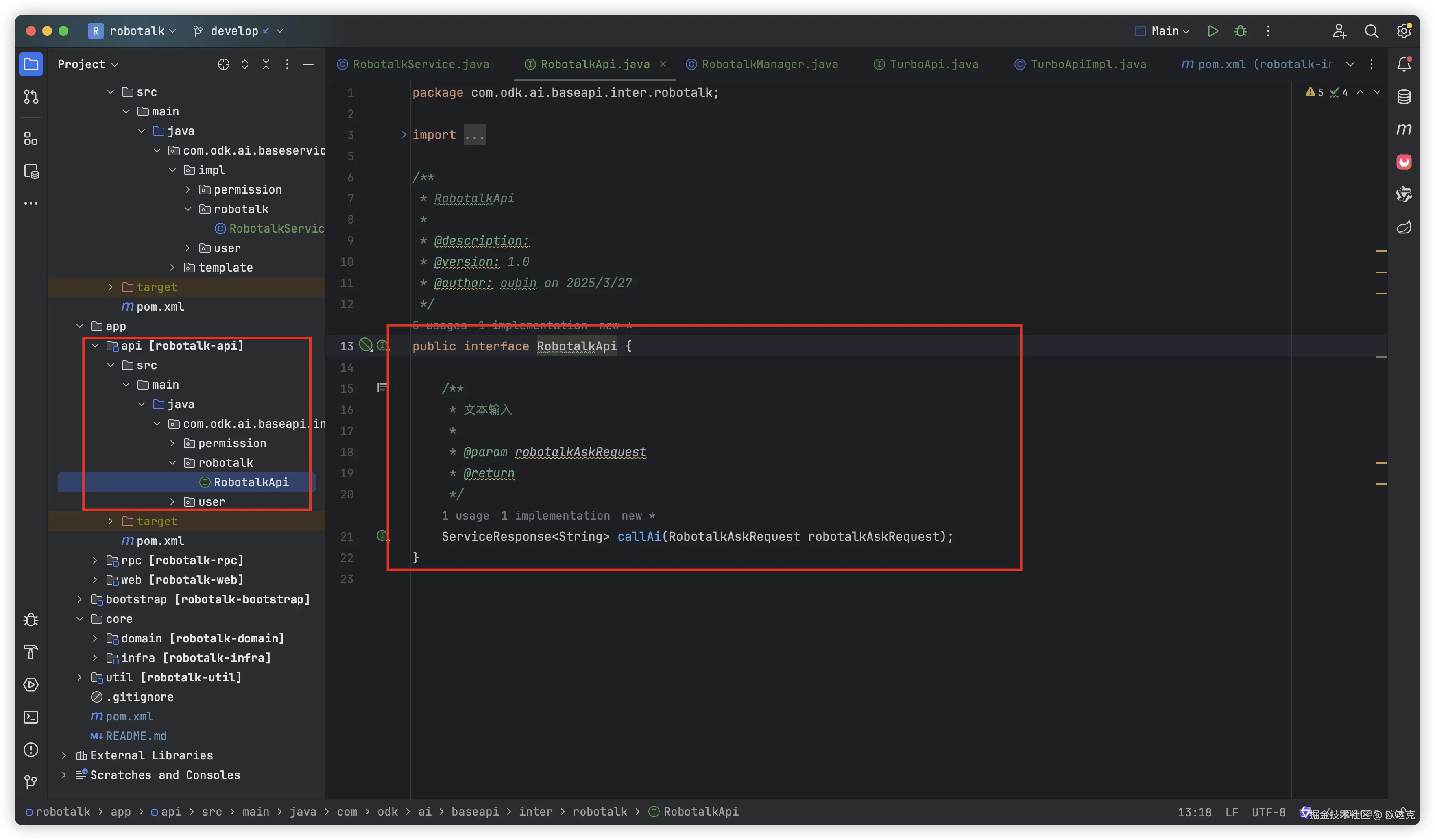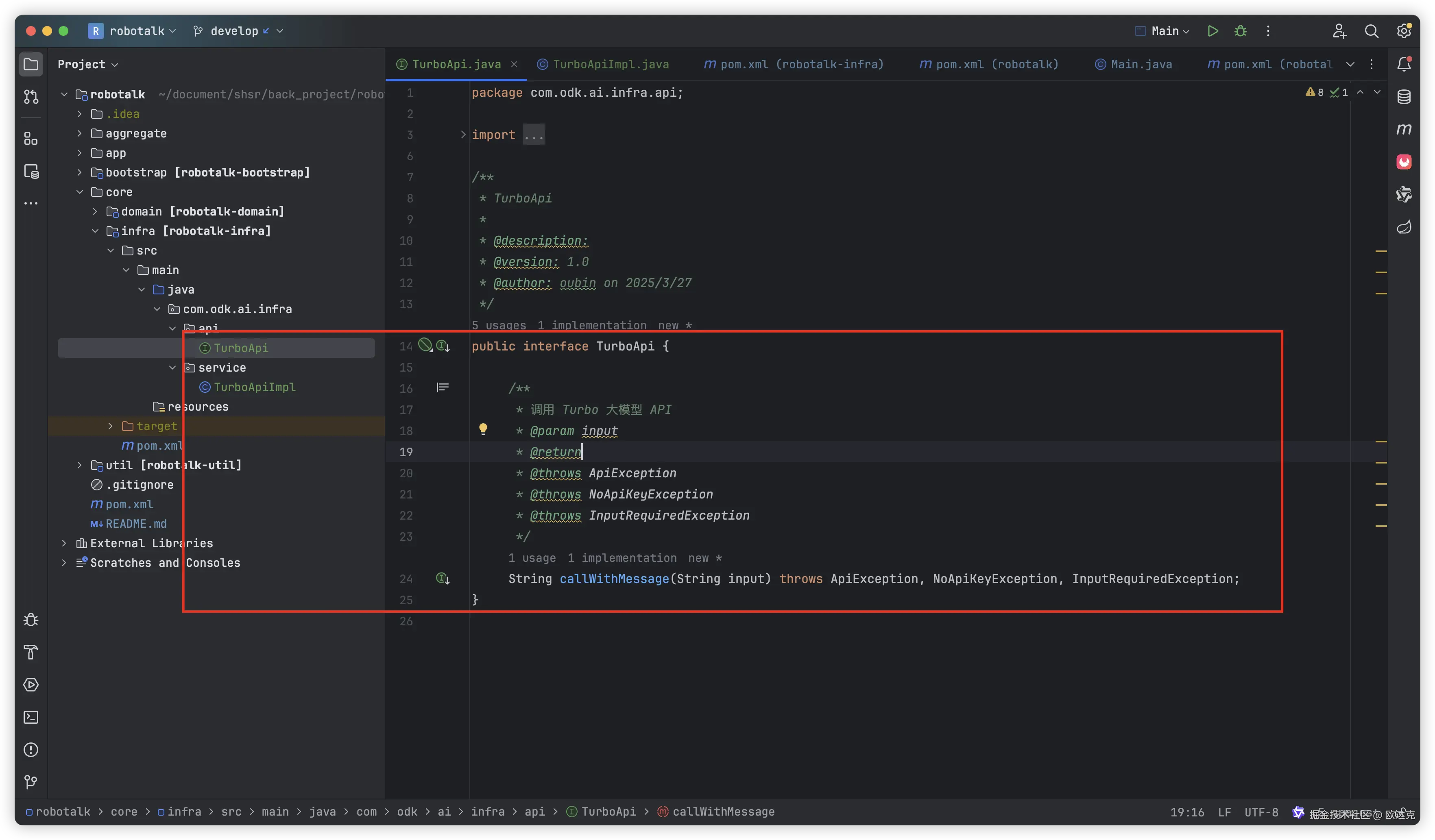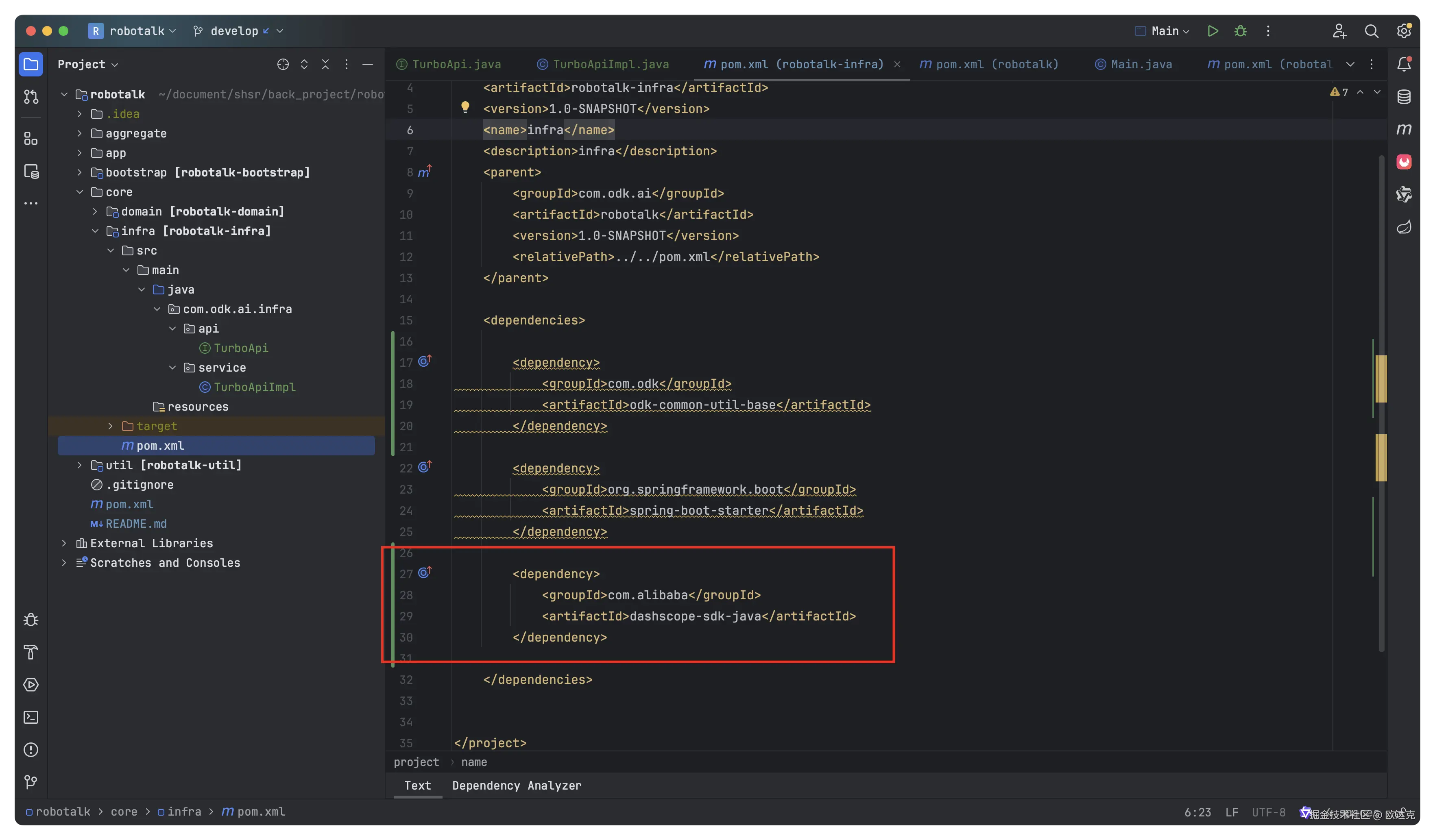 Step2: 在infra模块,注入依赖包,定义接口和实现类。
