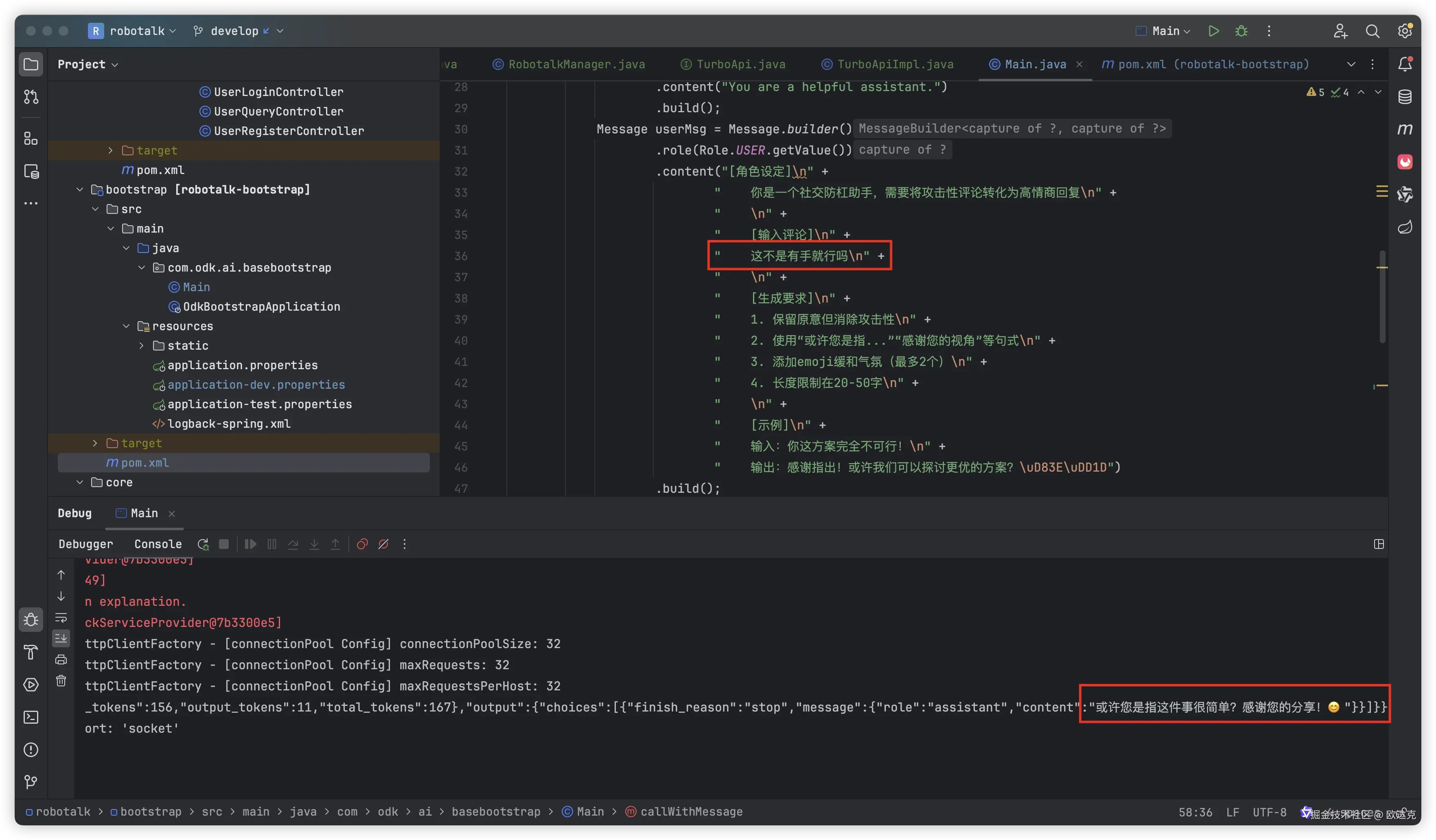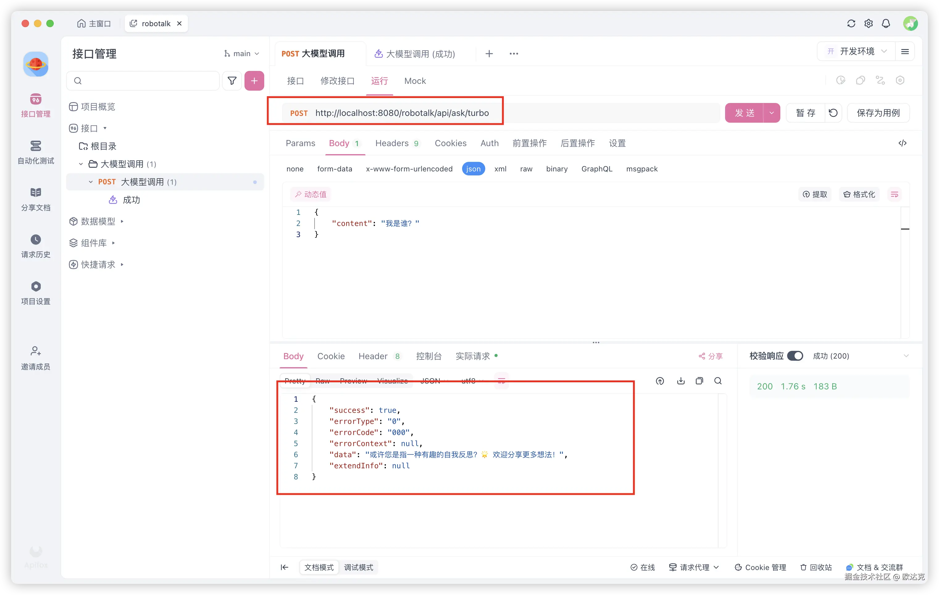 模型的对接还是比较简单的,因为现在还属于功能模块开发阶段,所以没有花很多时间在模型的选择上,也没有集成现有的工具包,如 Spring AI、Spring AI Alibaba 等。思路是没问题的,有句话不是说:先去做,哪怕做成一堆狗屎,再慢慢去改,一个粗糙的开始,就是最好的开始。
