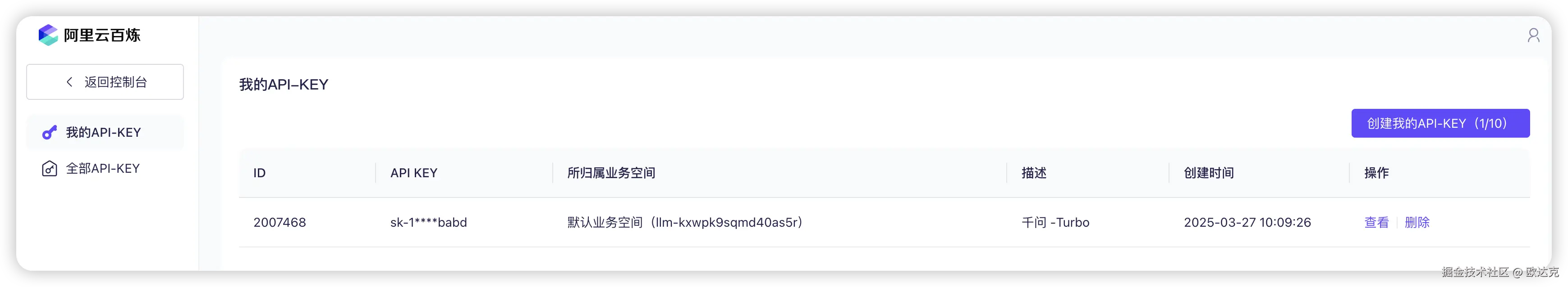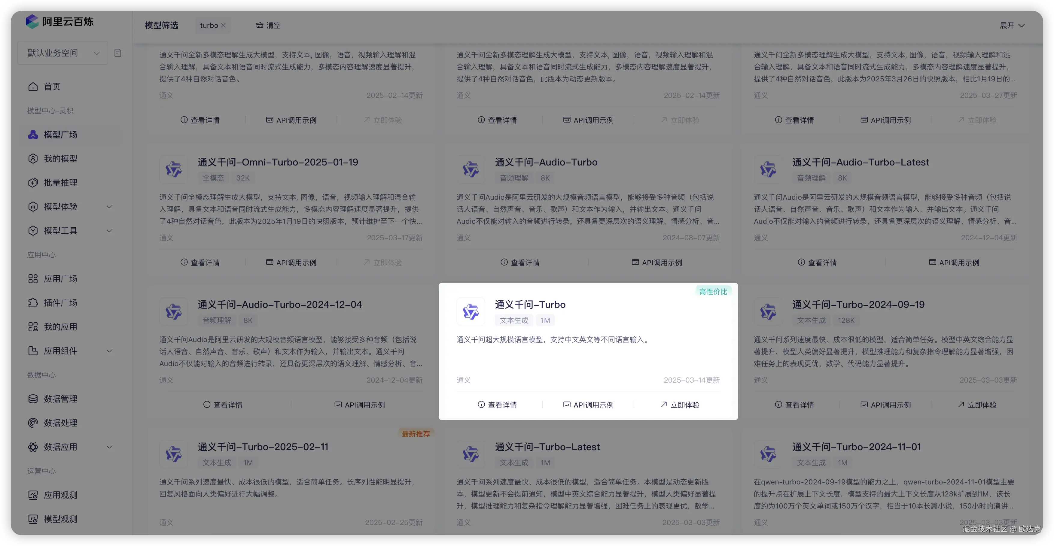 直接访问模型广场,找到 Turbo,查看 API 调用示例,