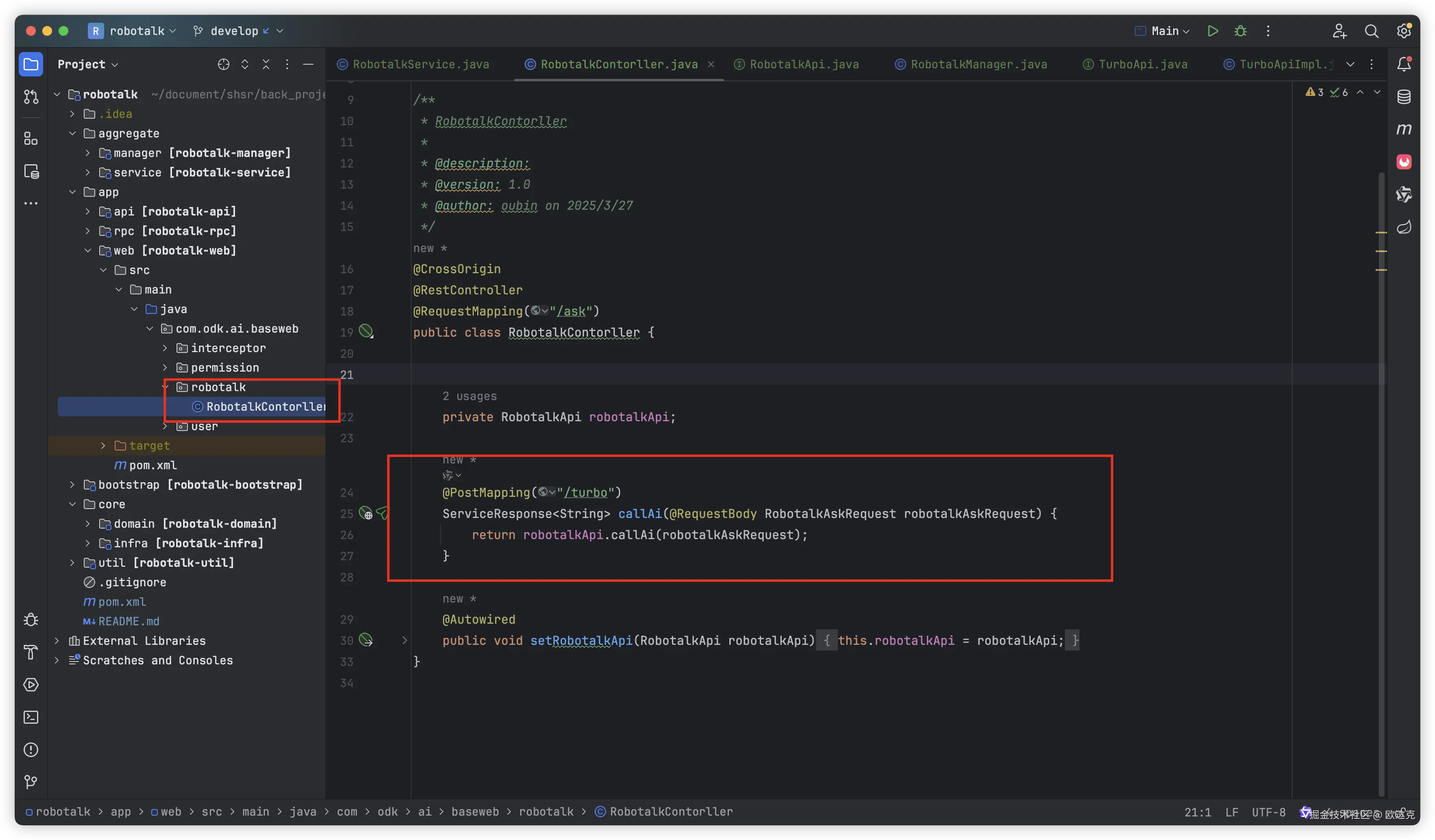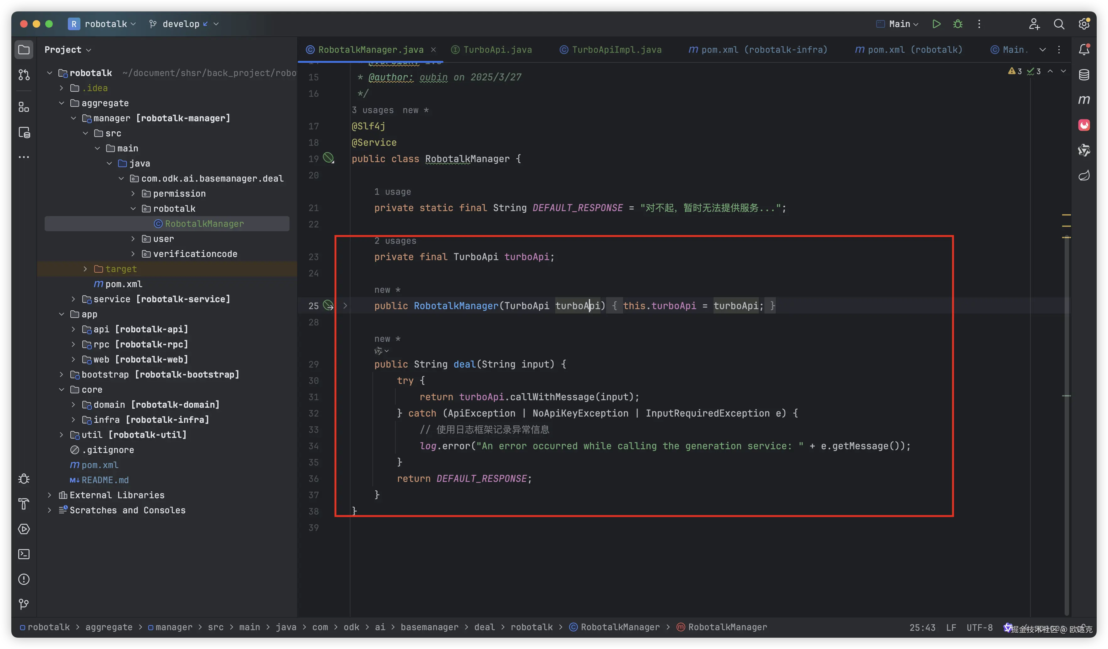 Step3: manager 模块发起请求,调用 infra 模块新增的方法。