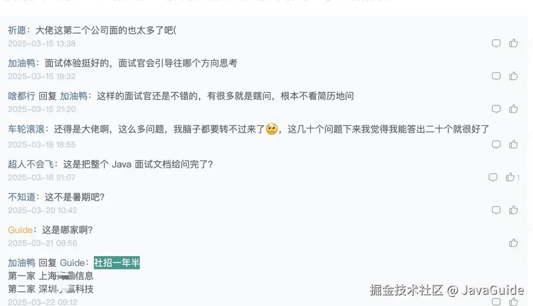 参考答案:上面绝大部分面试问题的答案,都可以在 JavaGuide 和 《Java 面试指北》 中找到。