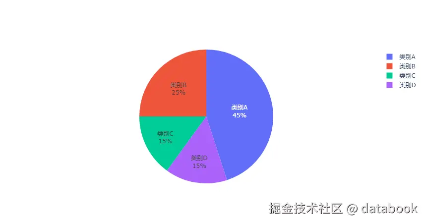 我们首先导入了 Plotly 的 graph_objects 模块,然后分别定义了类别标签和对应的数值列表,为后续的饼图绘制提供了数据基础。